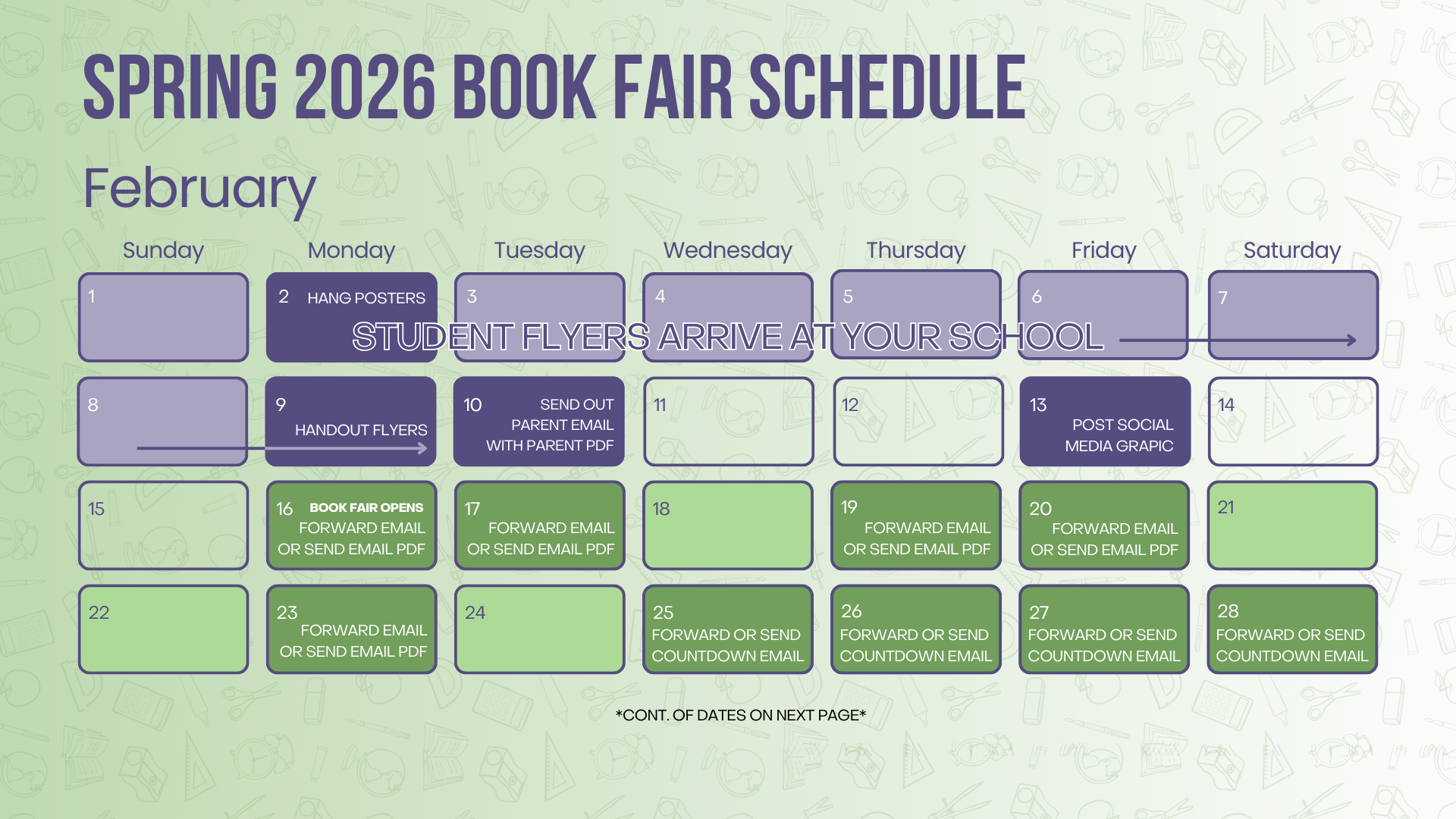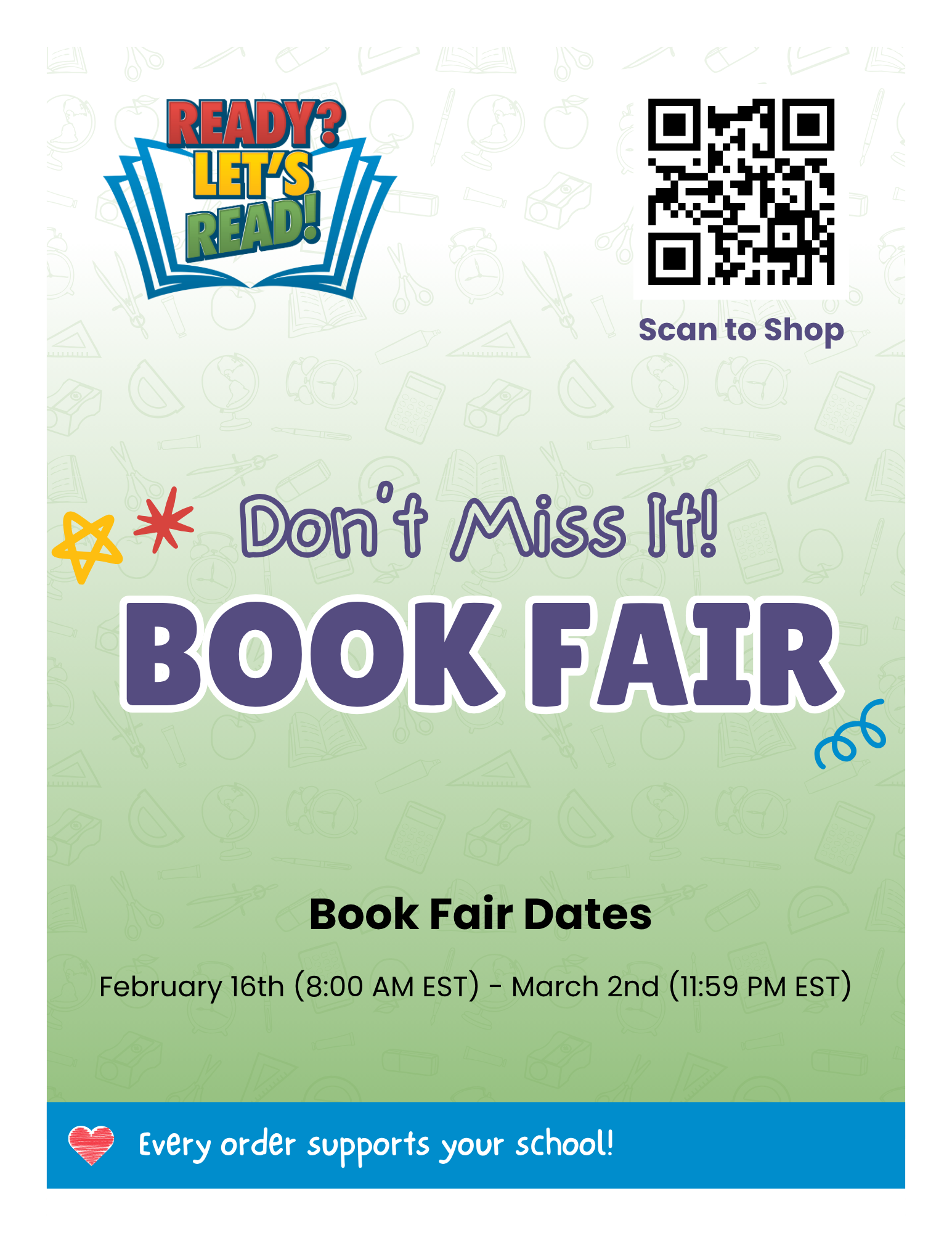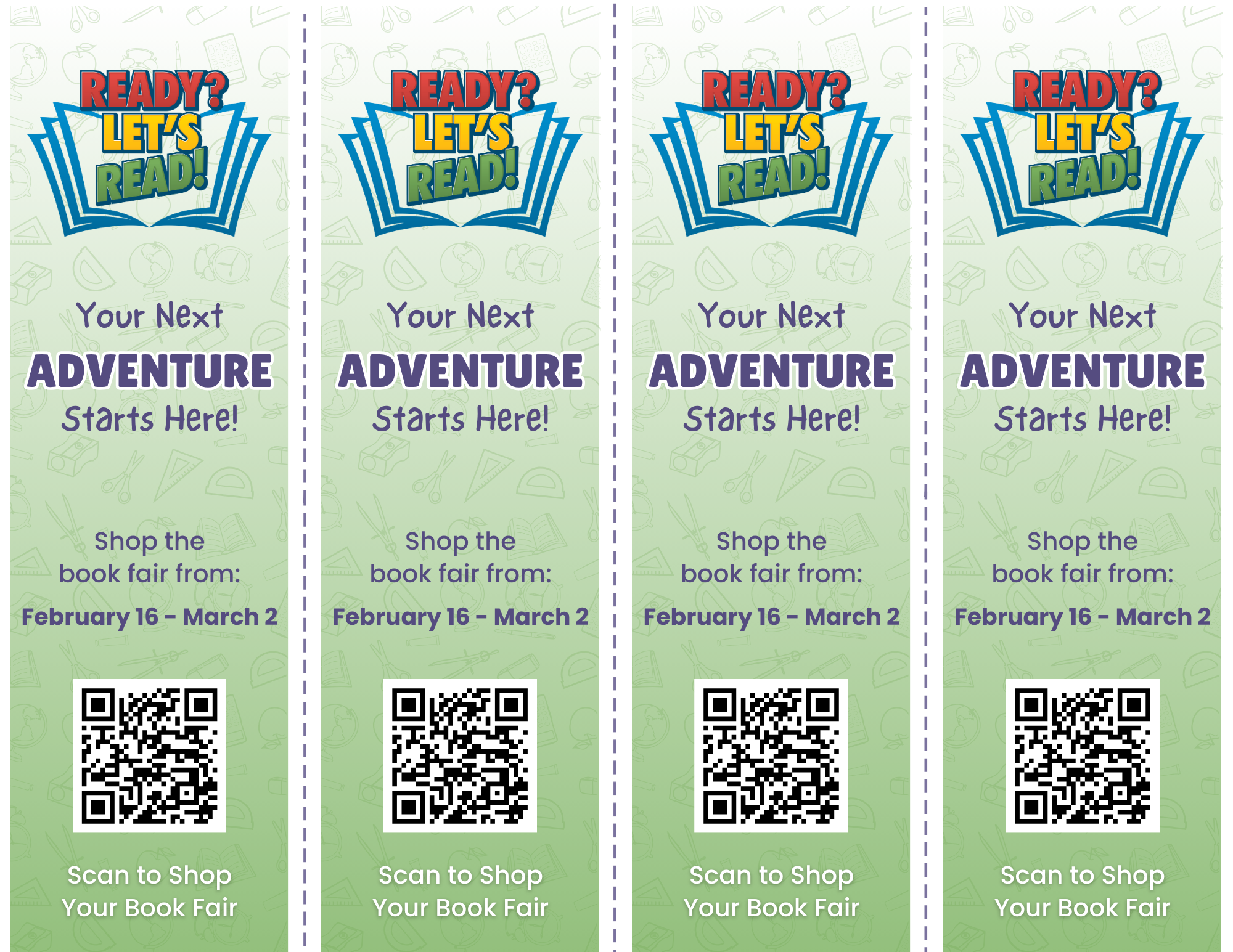 The book fair is finally here! Remind your students and their parents to shop your book fair. Remember, you will receive 10% cash back on book fair totals under $1,000 and 20% cash back on book fair totals over $1,000. We will send you an email that you can forward to your students/parents every day that the book fair is open. If you are unable to forward emails to your students you can use the “Email PDFs” from the Book Fair Materials section below and attach them in an email or newsletter instead.